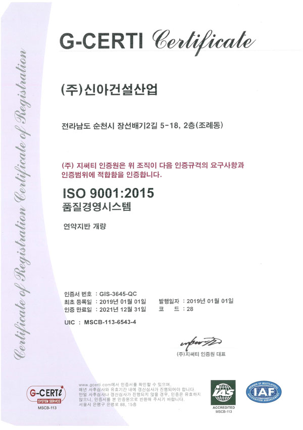 ISO9001인증서