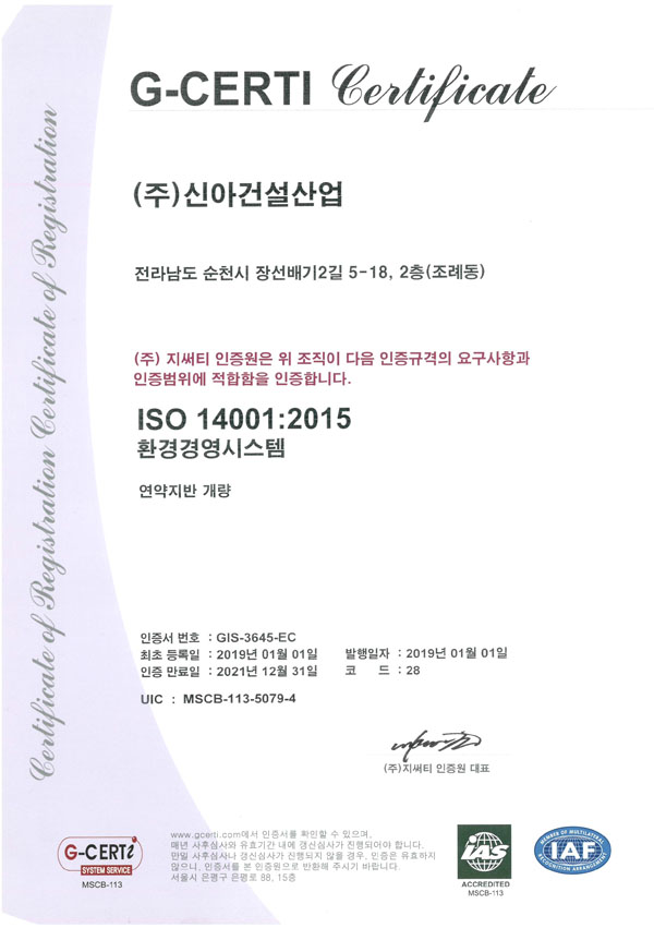 ISO14001인증서