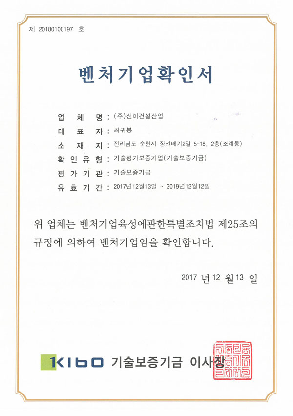 벤처기업확인서 (2017년)