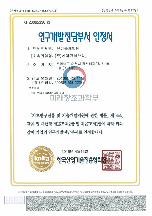 연구개발전담부서 인정서